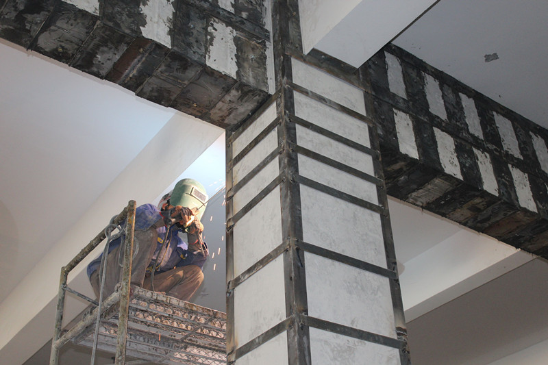 粘鋼加固當(dāng)前在工程中的應(yīng)用主要為混凝土柱和梁,主要應(yīng)用范圍涵蓋以下幾類:①上世紀(jì)早期、中期設(shè)計(jì)的建筑,一方面當(dāng)時的設(shè)計(jì)要求較低,另一方面至今也已經(jīng)達(dá)到或者接近使用年限,在各種使用條件自然條件下已經(jīng)遭到嚴(yán)重破壞,隨時有可能發(fā)生倒塌。例如山西紡織印染廠、山西省圖書館舊藏書樓。②設(shè)計(jì)階段假設(shè)錯誤或者配筋不足引起的局部破壞結(jié)構(gòu)。例如山西省人大常委辦公大樓、國內(nèi)第一個工程遼陽化纖總廠變電所大樓承載梁裂縫處理。③施工階段的不當(dāng)操作引起混凝土強(qiáng)度不足、保護(hù)層偏大等問題也越來越多的采用了粘鋼加固法。如山陰縣七里溝新村小學(xué)教學(xué)樓。④結(jié)構(gòu)改造也是一個非常重要的方面,結(jié)構(gòu)加層、功能改變,粘鋼加固法能夠有效的解決這類問題,并且已經(jīng)越來越多的應(yīng)用到其中。