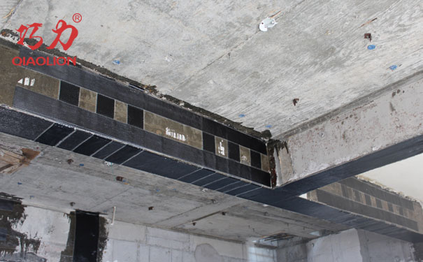 4、在上面滾刷一層環(huán)氧樹脂,保證它充分的可以覆蓋在表面,然后確保它充分的可以浸濕碳纖維,后用石粉撒在涂有膠的施工面上面,一定要保證粉刷層的粘結(jié)性。
