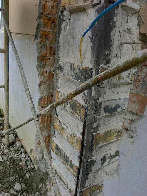 1.鉆孔 在鋼板上鉆固定螺栓孔,一般每平方可設(shè)固定螺栓孔6-7個(gè),把鋼板緊靠粘合面,在混凝土上相應(yīng)位置鉆固定螺栓孔, 也可用放樣的方法確定混凝土中的固定孔位置。 2.表面處理 鋼板及混凝土粘貼表面應(yīng)認(rèn)真進(jìn)行處理,鋼板應(yīng)進(jìn)行處銹、打磨處理,混凝土粘合面須打磨或糙化處理,但在任何情況 下均不應(yīng)鑿成溝槽。原構(gòu)件混凝土截面的棱角應(yīng)進(jìn)行圓化打磨,圓化半徑不小于20mm,磨圓的混凝土表面應(yīng)無松動(dòng)的 骨料和粉塵。 3.固定鋼板 外粘型鋼骨架的安裝應(yīng)在原構(gòu)件找平的表面上,每隔一定距離粘貼小墊片,使鋼骨架與原構(gòu)件之間留有2mm~3mm的 縫隙,以備壓入膠液。 4.封縫及排氣孔設(shè)置 封縫時(shí),應(yīng)保持桿件與原構(gòu)件混凝土之間注膠通道的通暢,同時(shí)應(yīng)在設(shè)計(jì)規(guī)定的注膠位置鉆孔,粘貼注膠嘴底座,并在 適當(dāng)部位布置排氣孔。待封縫膠固化后,進(jìn)行通氣試壓。若發(fā)現(xiàn)有漏氣處,應(yīng)重新封堵。 5.配膠及灌膠 根據(jù)推薦比例稱取A、B兩組分,用專用攪拌器攪拌均勻待用,用灌漿設(shè)備注膠,注膠應(yīng)從一端開始,當(dāng)臨近的膠嘴有 膠流出時(shí),將當(dāng)前的膠嘴封閉,移到出膠的膠嘴繼續(xù)注膠,當(dāng)排氣孔中有膠流出時(shí)則將其扎實(shí),傾斜或垂直安裝的鋼板 應(yīng)從最低位置開始注膠,同時(shí)注膠不宜過快,以防形成氣囊。 6.固化養(yǎng)護(hù) 常溫下(25℃),注膠施工結(jié)束后,應(yīng)靜置72h進(jìn)行固化過程的養(yǎng)護(hù),當(dāng)溫度降低,則適當(dāng)延長時(shí)間。養(yǎng)護(hù)期間,被 加固部位不得受到任何撞擊和振動(dòng)的影響。 7.檢驗(yàn) 檢查鋼板周邊是否有漏膠,并以小錘敲擊鋼板檢驗(yàn)鋼板的有效粘結(jié)面積。需要補(bǔ)密實(shí)區(qū)域可補(bǔ)鉆注膠孔和排氣孔進(jìn)行補(bǔ)注。 8.防腐處理 型鋼表面(包括混凝土表面)應(yīng)抹厚度不小于25mm的高強(qiáng)度等級(jí)水泥砂漿(應(yīng)加鋼絲網(wǎng)防裂)作防護(hù)層,也可采用其 他具有防腐蝕和防火性能的飾面材料加以保護(hù)。 (本文來源于網(wǎng)絡(luò),巧力加固材料整理報(bào)道,如有轉(zhuǎn)載、請(qǐng)注明出處!)